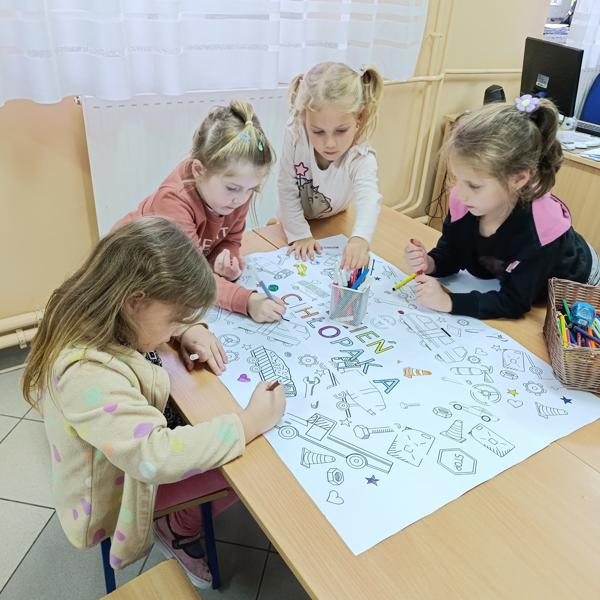 Nasza świetlica ciągle pracuje I ratownictwo też promuje Maluje,lepi z plasteliny Zabawia chłopców i dziewczyny Ogląda...