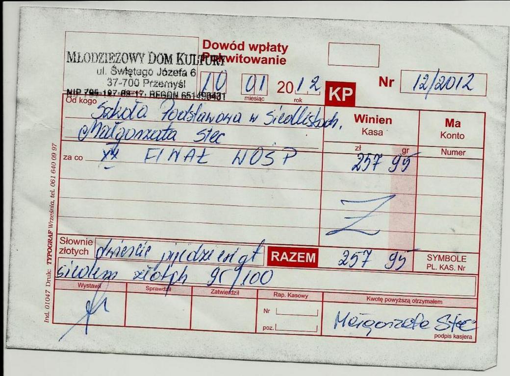 Nauczycielka Naszej Szkoły p. Małgorzata Stec byławspółorganizatorem XX Finału WOŚP na terenie miasta Przemyśla. Organizowała licytację w Klubie Niedżwiadek. Do pracy i pomocy przy finale zaangażowane zostały uczennice klasy piątej, które na terenie Naszej Szkoły zbierały wolne datki do puszki. dzięki nauczycielom, uczniom i znajomym puszka zasilona została na kwotę 257 zł.