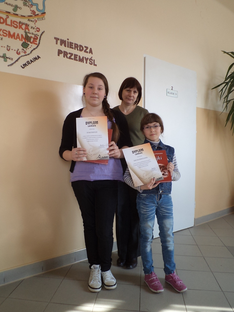 Najwyższe wyniki i nagrody książkowe zdobyli: Gabriela Małachowska kl. IV - 5 miejsce i Kinga Kasprzyk kl. VI - V miejsce. Pozostali uczniowie biorący udział w konkursie zdobyli wyniki powyżej średniej krajowej. Uczniów do konkursu przygotowywała Pani mgr Grażyna Żytka.