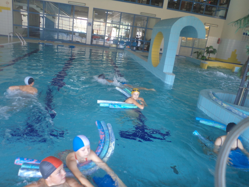 W czwartkowe przedpołudnie, 27 września uczniowie klas IV-VI gościli z wizytą na jarosławskim basenie. Zajęcia rekreacyjne w wodzie dostarczyły dzieciom wielu emocji. Różnorodność atrakcji sprawiła, iż czas spędzony w wodzie upłynął bardzo szybko. Szczególnym miejscem, gdzie można było spotkać naszych uczniów była ,,dzika rzeka” oraz zjeżdżalnia. Wszyscy uczestnicy zgodnie stwierdzili, iż był to ich pierwszy, ale z pewnością nie ostatni wyjazd na basen w Jarosławiu.