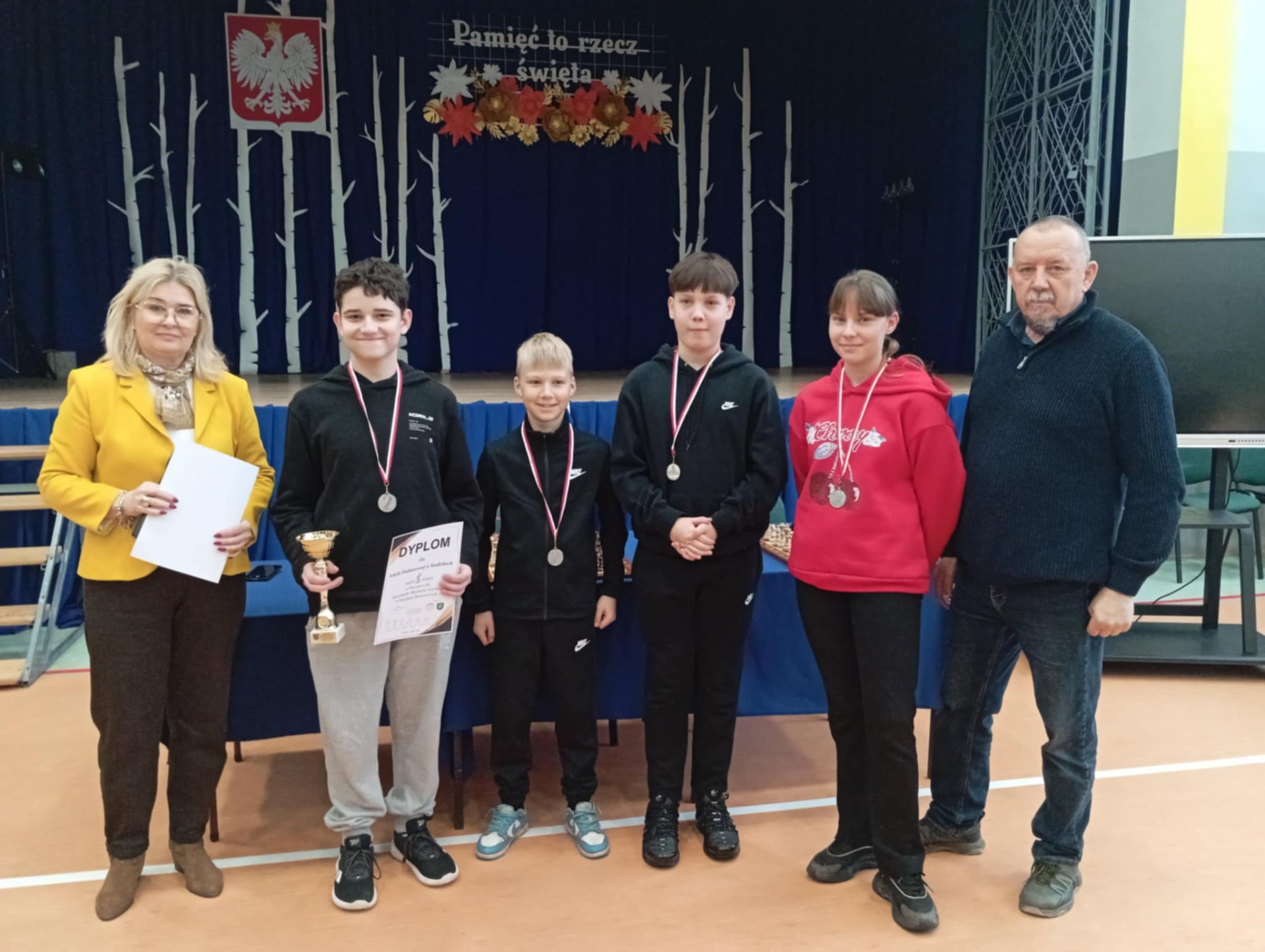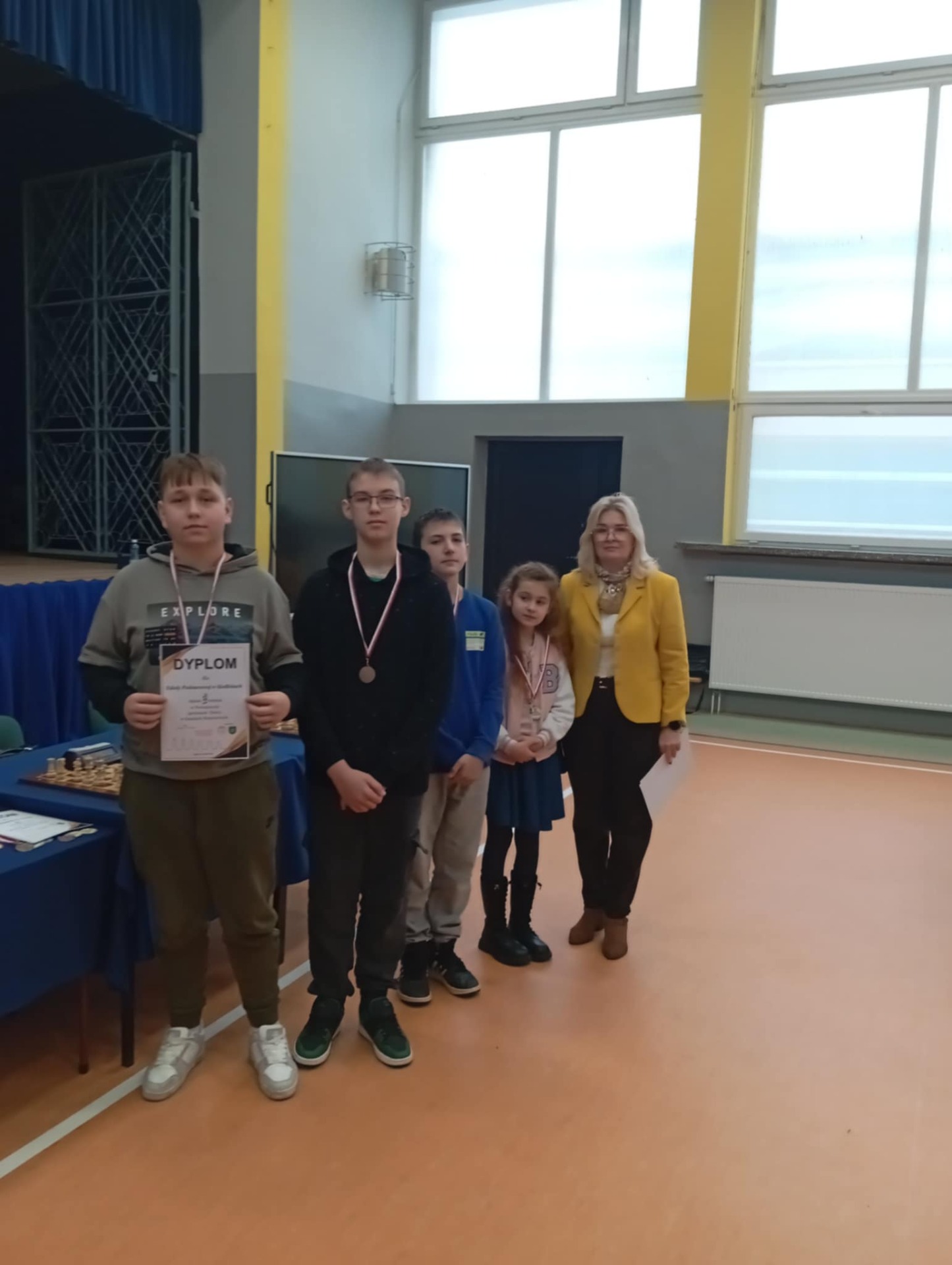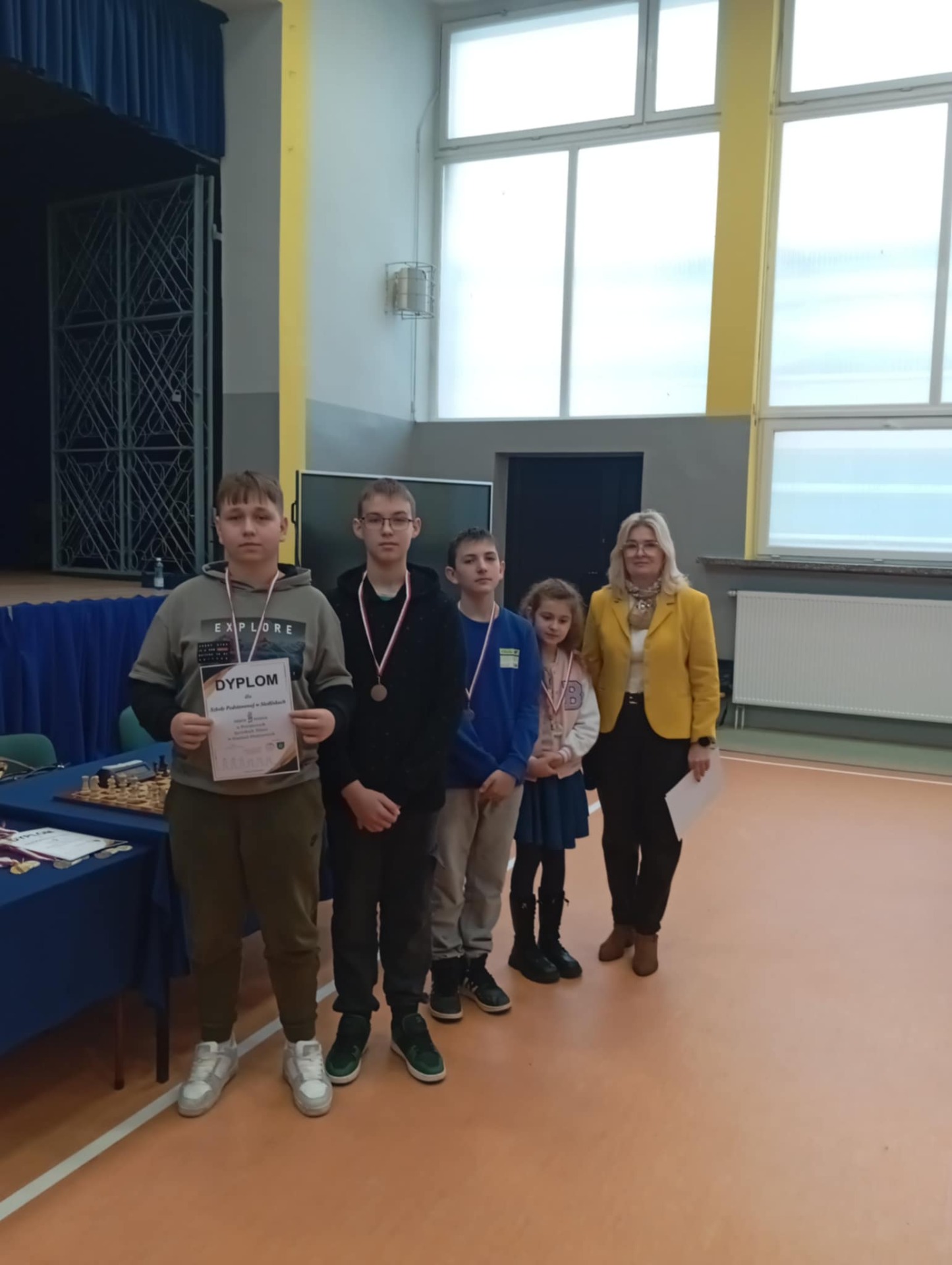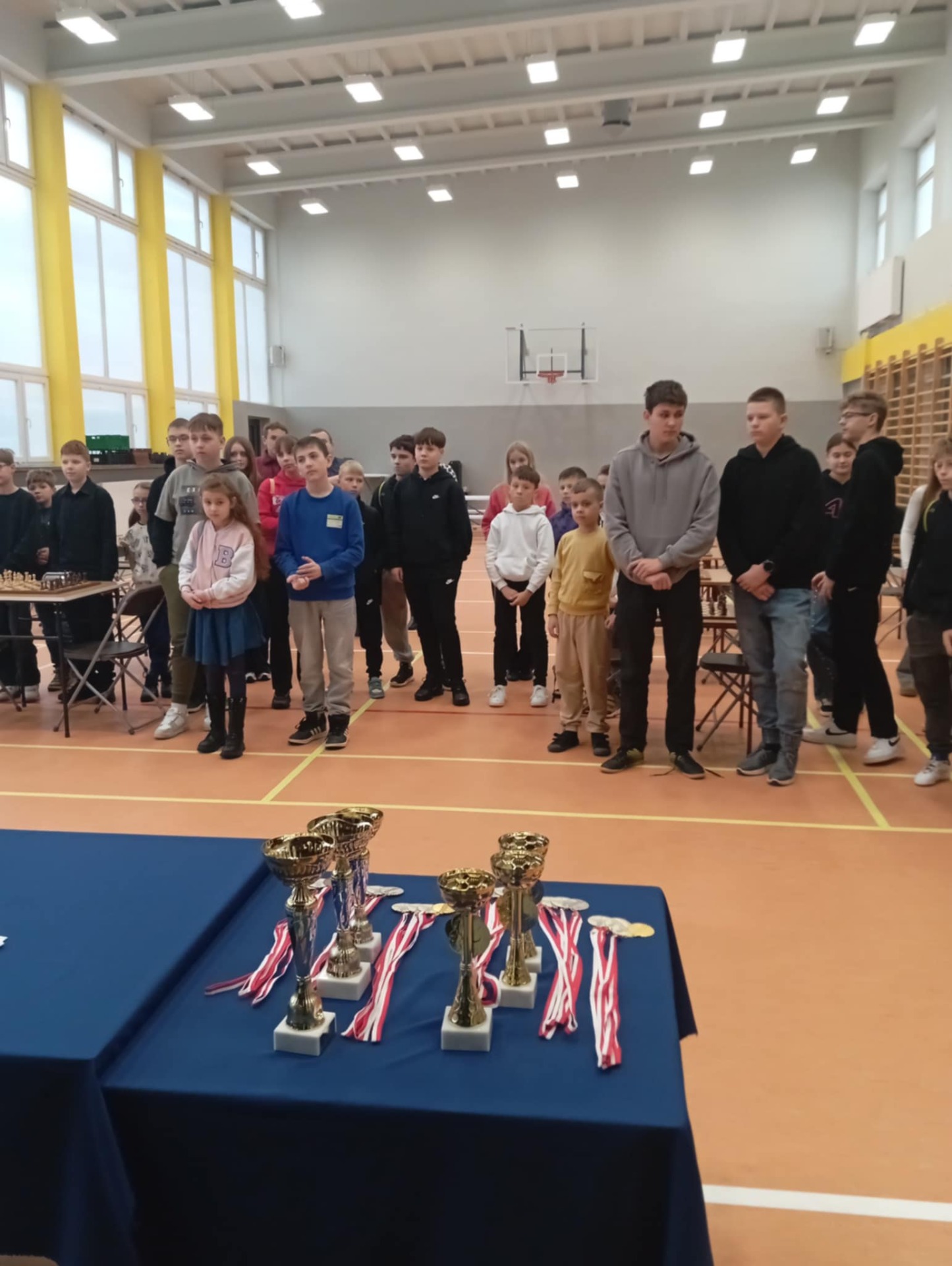 Powiatowe Igrzyska Dzieci i Młodzieży odbyły się 21 listopada w Medyce. Igrzyska rozpoczęły się od wystąpienia pani dyrektor Szkoły Podstawowej W Medyce Elżbiety Brody, która przywitała wszystkie drużyny życząc powodzenia w rozgrywkach. Nad prawidłowym przebiegiem turnieju czuwali sędziowie pan Andrzej Krawczyk i pan Bartłomiej Górka.Podczas eliminacji na szczeblu gminnym dwie drużyny z naszej szkoły zapewniły sobie miejsce na tym turnieju. Pierwszą drużynę uczniów młodszych reprezentowali Alan Halendy, Radosław Serwański Kacper Martowicz i Gabriela Stawarz. Starszą natomiast Hubert Płocica, Filip Kostkowicz,Marcel Szulc i Anna Lach. Opiekunem drużyn był pan Edward Markiewicz. Do rozgrywek przystąpiły drużyny z Medyki, Torek , Siedlisk, Orłów oraz Nizin. Rywalizacja była bardzo zacięta zarówno w grupie młodszej jak i starszej. Awans do Rejonowego etapu z naszej szkoły wywalczyła drużyna z klas VII-VIII zajmując drugie miejsce. Nasza drużyna została jedynie pokonana przez drużynę z Torek. Grupa młodszych uczniów zajęła również II miejsce ex aequo z drużyną z Medyki , które powinno dać awans do zawodów Rejonowych ale małe punkty zdecydowały o awansie drużyny z Medyki. Po zakończeniu turnieju pani Elżbieta Broda wręczyła zwycięzcom dyplomy, medale i puchary. Etap Rejonowy już we wtorek 25 listopada, gratulujemy naszym szachistom dotychczasowych sukcesów i życzymy zdobycia kolejnych trofeów.