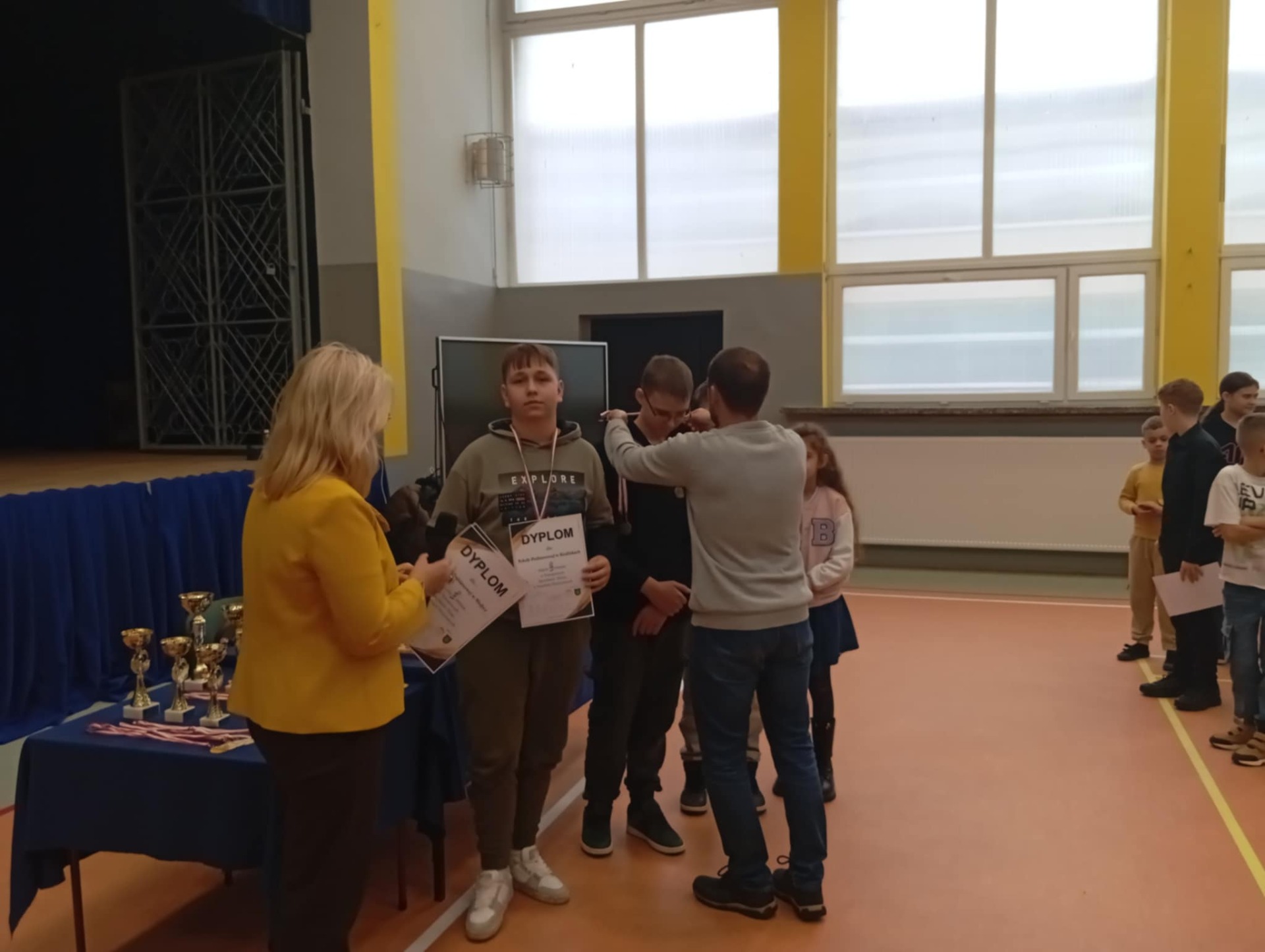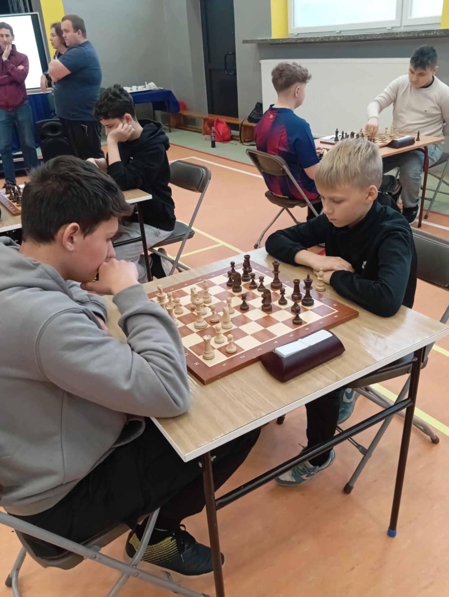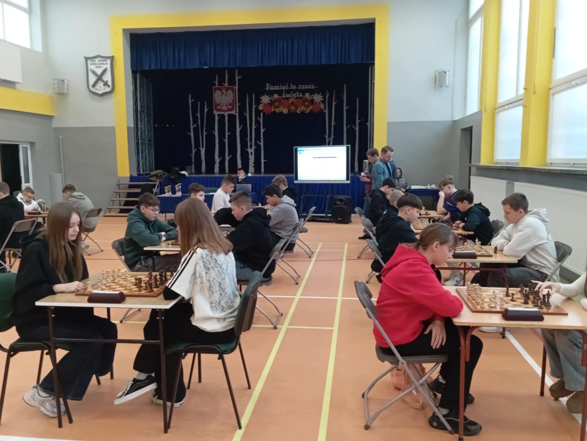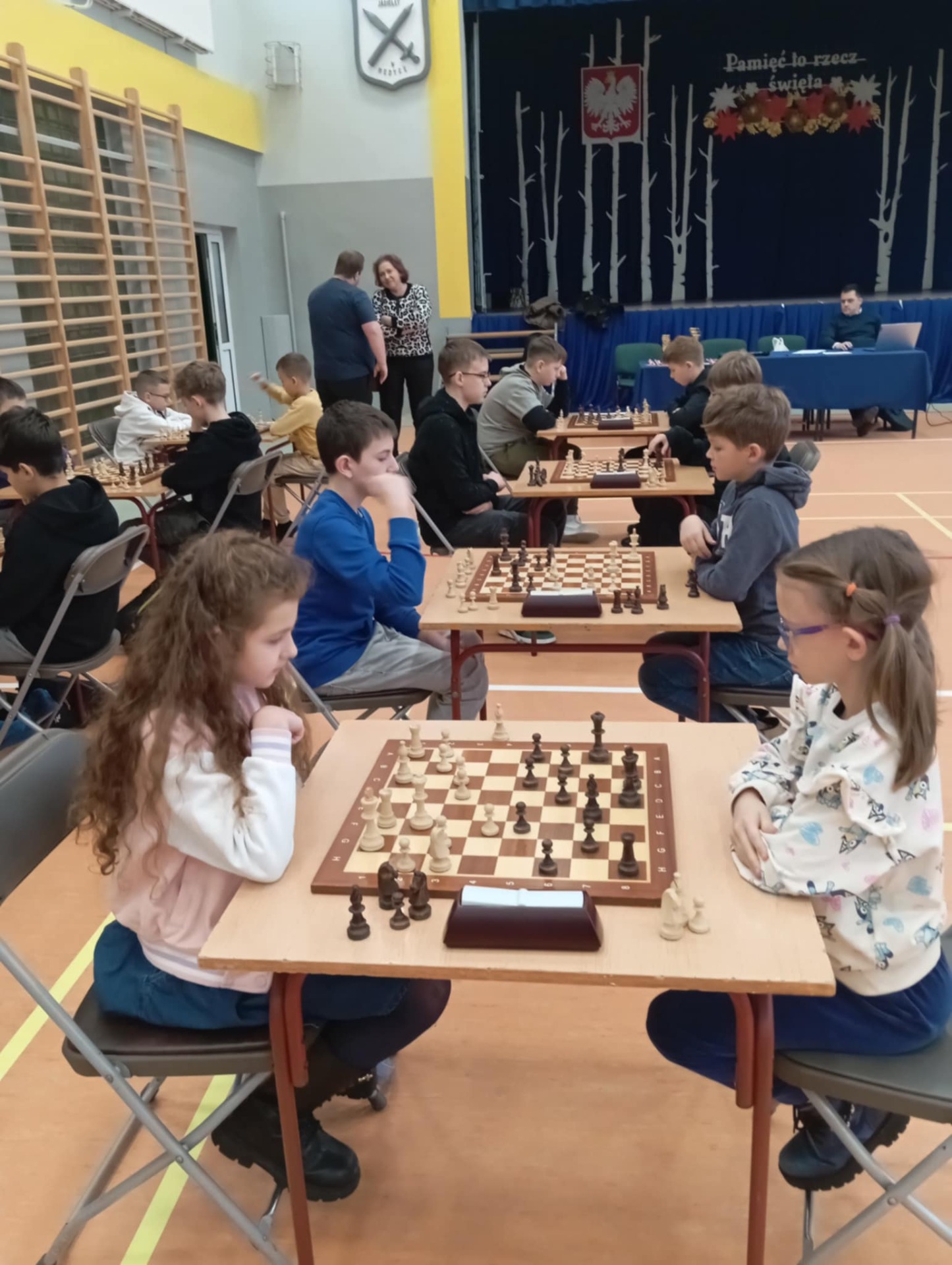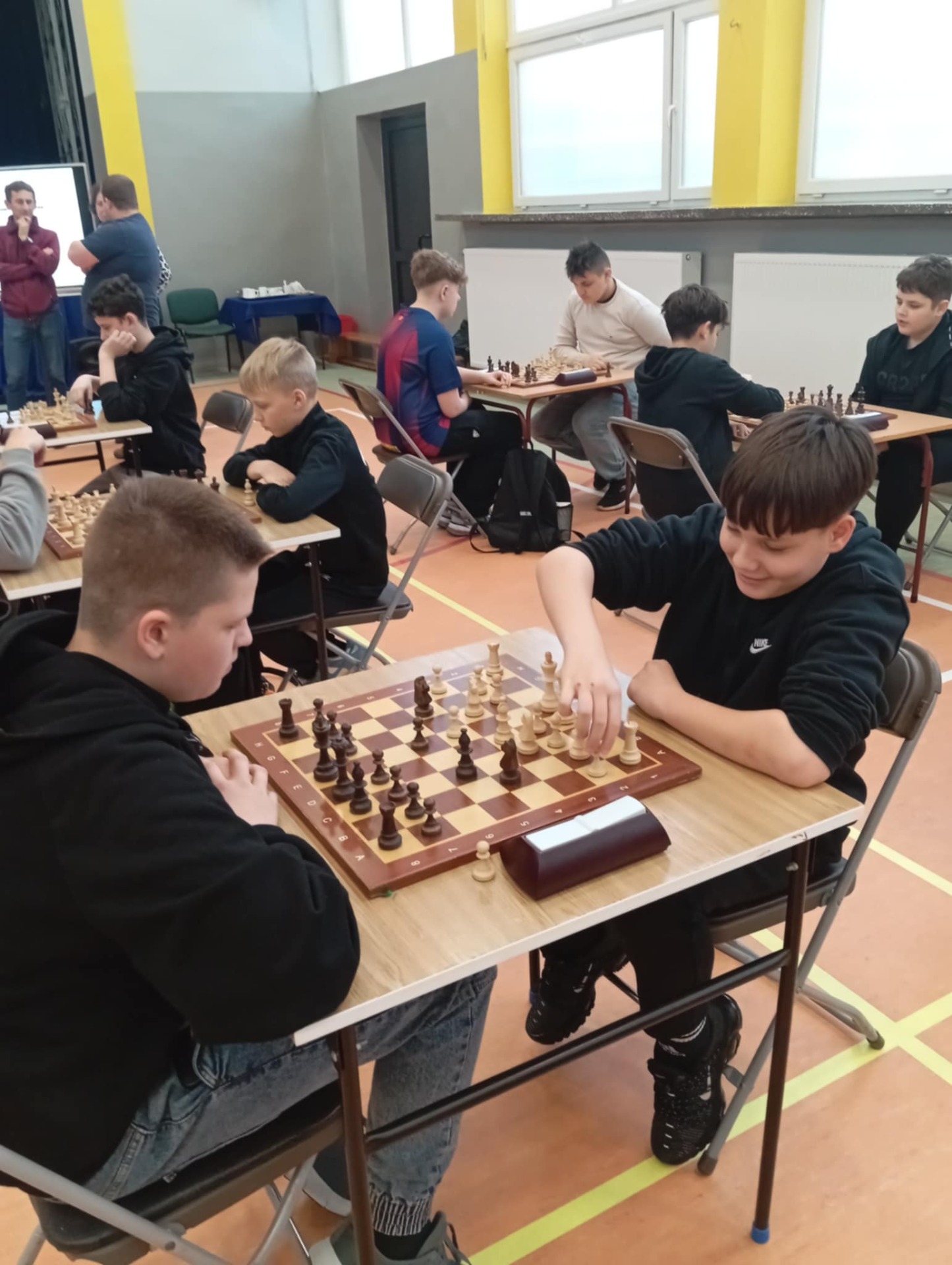 Powiatowe Igrzyska Dzieci i Młodzieży odbyły się 21 listopada w Medyce. Igrzyska rozpoczęły się od wystąpienia pani dyrektor Szkoły Podstawowej W Medyce Elżbiety Brody, która przywitała wszystkie drużyny życząc powodzenia w rozgrywkach. Nad prawidłowym przebiegiem turnieju czuwali sędziowie pan Andrzej Krawczyk i pan Bartłomiej Górka.Podczas eliminacji na szczeblu gminnym dwie drużyny z naszej szkoły zapewniły sobie miejsce na tym turnieju. Pierwszą drużynę uczniów młodszych reprezentowali Alan Halendy, Radosław Serwański Kacper Martowicz i Gabriela Stawarz. Starszą natomiast Hubert Płocica, Filip Kostkowicz,Marcel Szulc i Anna Lach. Opiekunem drużyn był pan Edward Markiewicz. Do rozgrywek przystąpiły drużyny z Medyki, Torek , Siedlisk, Orłów oraz Nizin. Rywalizacja była bardzo zacięta zarówno w grupie młodszej jak i starszej. Awans do Rejonowego etapu z naszej szkoły wywalczyła drużyna z klas VII-VIII zajmując drugie miejsce. Nasza drużyna została jedynie pokonana przez drużynę z Torek. Grupa młodszych uczniów zajęła również II miejsce ex aequo z drużyną z Medyki , które powinno dać awans do zawodów Rejonowych ale małe punkty zdecydowały o awansie drużyny z Medyki. Po zakończeniu turnieju pani Elżbieta Broda wręczyła zwycięzcom dyplomy, medale i puchary. Etap Rejonowy już we wtorek 25 listopada, gratulujemy naszym szachistom dotychczasowych sukcesów i życzymy zdobycia kolejnych trofeów.